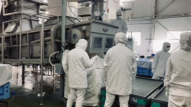 麴菌は、人の手で振りかけるのではなく、機械によって蒸米全体に満遍なく散布されていました。蒸米を運ぶ行業も機械化されており、重労働を減らすことで女性でも働きやすい環境が整えられていました。伝統産業でありながら、現代的な設備を積極的に取り入れていることに感心しました。
